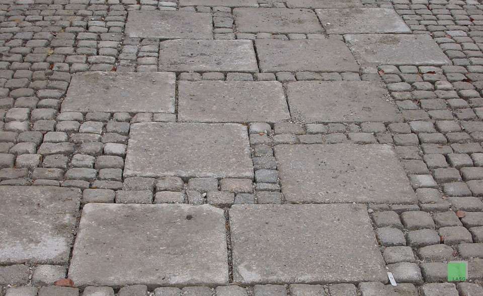 Detail Gretplatten mit Granit-Kleinstein-Pflaster