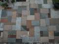 Detail Terrasse, Belag aus Restbeständen, Granit, Quarzit, Klinker, Schiefer, Gneis,…